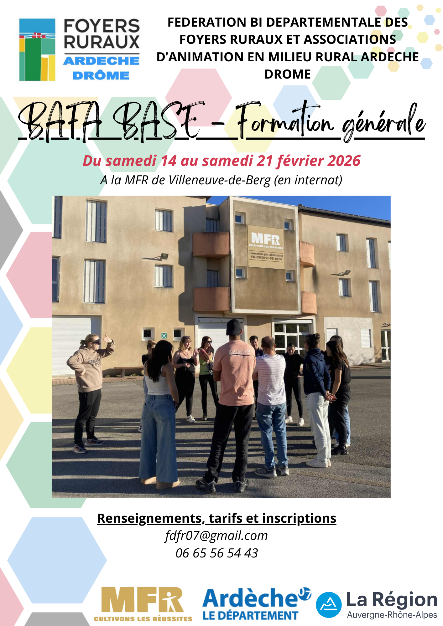 La Fédération, en partenariat avec la MFR de Villeneuve de Berg organise pendant les vacances scolaires de février une session BAFA – Formation Générale en internat.