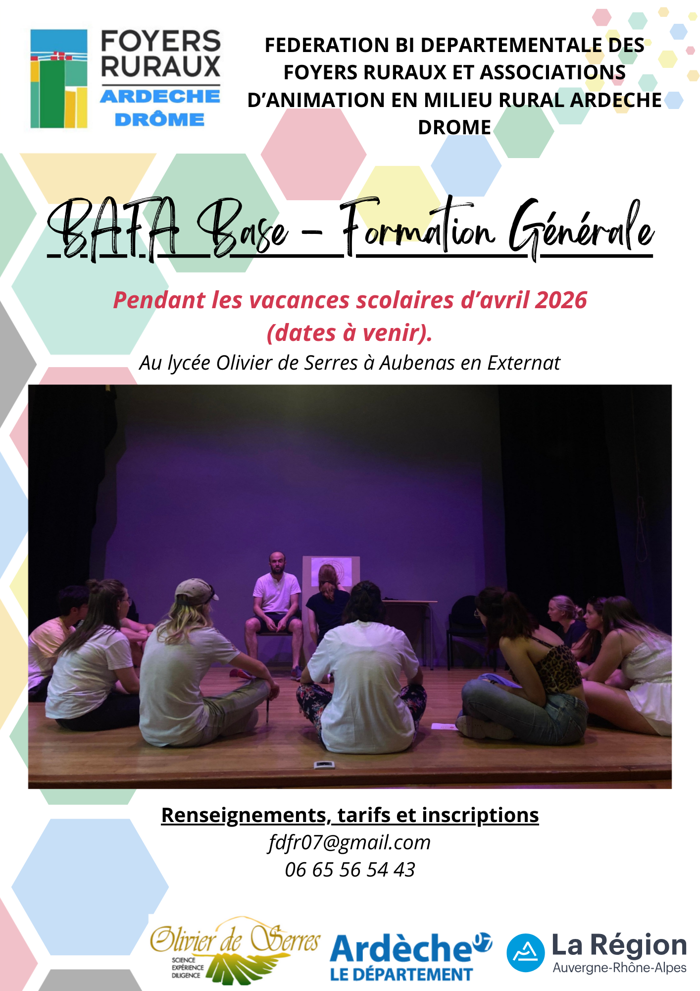 La Fédération, en partenariat avec le lycée agricole Olivier de Serres organise pendant les vacances scolaires d’avril une session BAFA – Formation Générale en externat.